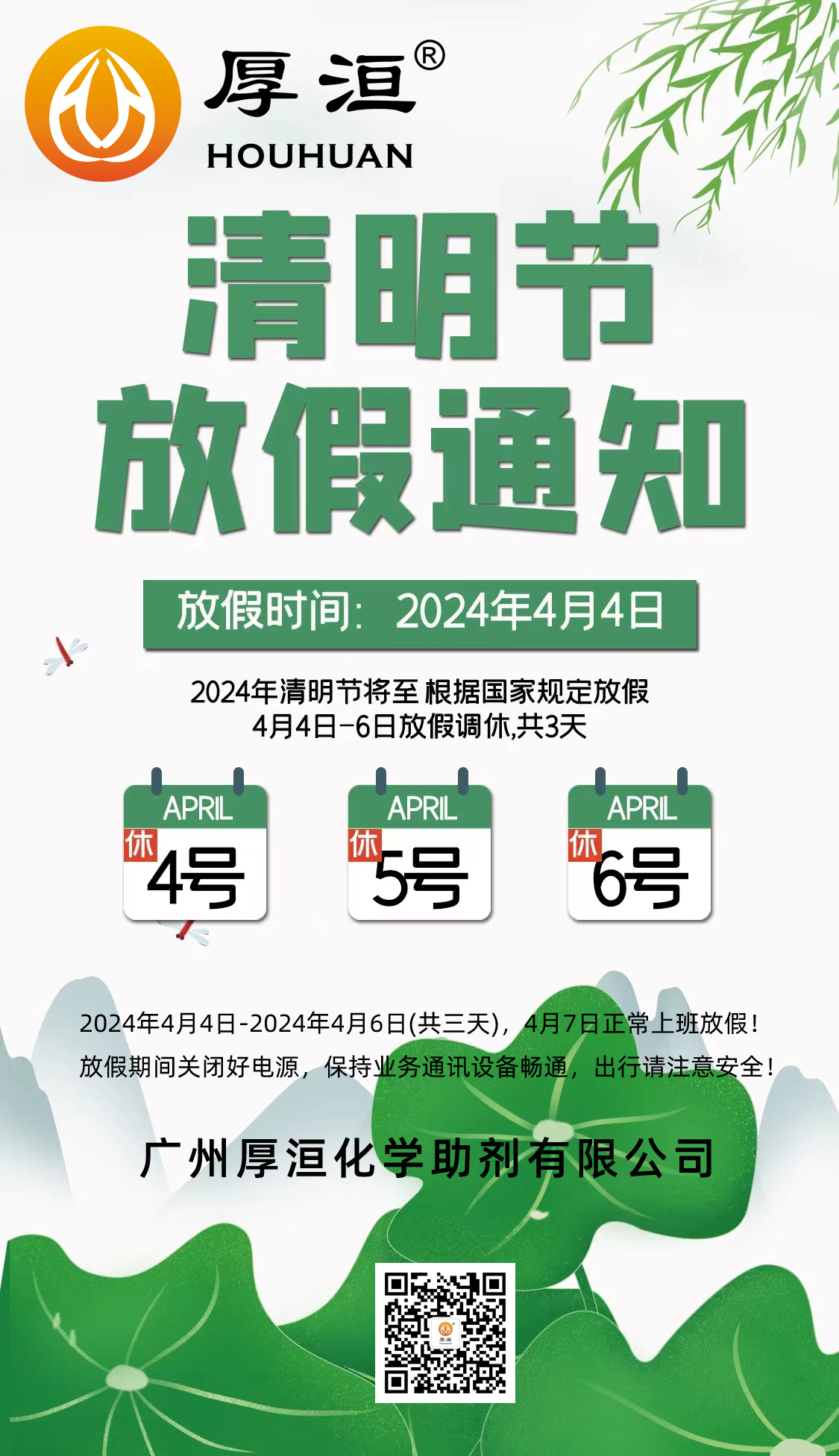 2024年04月04日,甲辰年二月廿六是清明節(jié)(中國(guó)傳統(tǒng)節(jié)日),根據(jù)國(guó)家法定節(jié)假日規(guī)定,結(jié)合公司實(shí)際情況,現(xiàn)將放假事宜做如下通知: